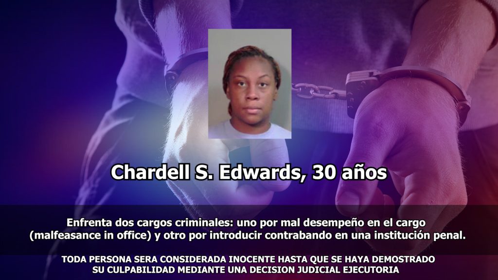 La detenida, identificada como Chardell S. Edwards, de treinta años, trabajaba en la Oficina del Sheriff del Distrito de Caddo desde julio de 2022. Había sido suspendida administrativamente desde el veinte de octubre, cuando se inició una investigación interna sobre las denuncias.