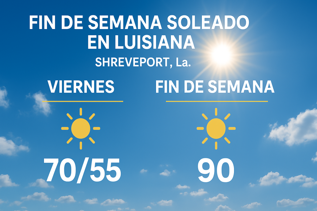 SHREVEPORT, La. — El clima se mantendrá estable y agradable durante todo el fin de semana, con abundante sol y temperaturas por encima del promedio habitual para esta época del año.
